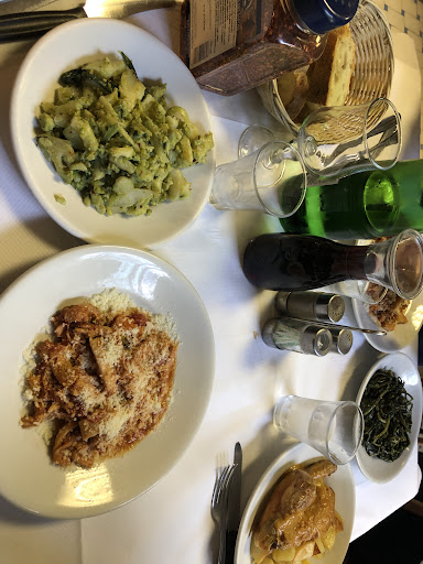 We ate here on two out of three nights staying in the area. There are tables inside and out on the pavement. We were offered an English menu but managed with the Italian and a translator app. On the first visit the antipasto of the house arrived quickly, a selection of grilled vegetables topped with breadcrumbs, we shared a portion along with some very good bread. I then had rabbit and my husband a meat skewer, both came with potatoes. Both dishes were delicious. We shared a contorni of green beans, cold and disappointing. However the bread and coffee were also good. Our main issue was that the menu states a litre of wine for 8 euros, an old 75 cl bottle arrived with the house wine inside. We were still charged 8 euros. Other than that it was a good experience. The bill was a reasonable 44.50 euros. On our second visit we ordered two half litres of wine 😉. We shared a pasta Amatriciano which was excellent. Having loved the rabbit, I ordered it again but this time it was off the bone and not quite so good. Rooster and rabbit with potatoes was enjoyed along with a cold melanzane contorni. Highly recommend...