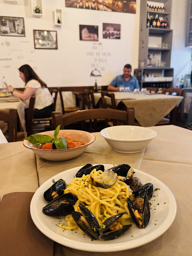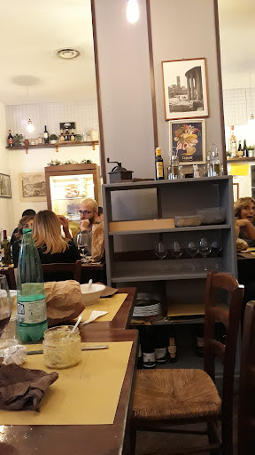 Read moreOttima Osteria romana. Il posto si presenta esattamente come deve essere un'osteria, con pochi tavoli (quindi meglio prenotare), in un unica sala e sullo sfondo la cucina con Cinzia (la titolare) che di tanto in tanto sbircia la sala per vedere come procede la serata e se la gente ha l'espressione soddisfatta di chi sta mangiando bene. Da parte del personale di sala troviamo preparazione, cortesia e disponibilità, declinata in accento romanesco. Il menù è semplice e lo si può leggere in una grande lavagna che copre una parete; diversi sono i colori, per antipasti, primi, secondi ecc. ...e troviamo i tipici piatti della tradizione romana: tonnarelli cacio e pepe, carbonara, gricia, saltimbocca, ecc.fino ad arrivare ai dolci...e bisogna arrivarci! Meglio andare digiuni da un po', perchè limitarsi nella scelta è frustrante ;-) Ridotta, ma attenta, la scelta dei vini; con, ovviamente indispensabili presenze laziali, accompagnati da alcuni vini tipici marchigiani e abruzzesi. Più che onesti i prezzi applicati. Una tappa da inserire nelle...