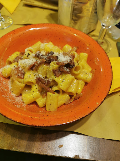 Read moreIl locale è ubicato sulla via di Torrevecchia ed è molto comodo da raggiungere per chi si trova in zona. L'interno è molto accogliente con toni di giallo e legno, alle pareti vi sono affissi cartelli con tanti detti romani che non disturbano affatto. Era di sabato sera e abbiamo prenotato perché non è molto ampio e i tavoli erano tutti occupati. Il proprietario molto gentile, accorto e professionale. Abbiamo ordinato mezze maniche alla carbonara, polpette alla pizzaiola ed eccellenti polpette fritte con carne bollita dentro.. Una delizia.. Ci hanno pure serviti una porchetta meravigliosa come extra per un ritardo della cucina ( sorpresa molto gradita). La cena è stata di alta qualità solo che le porzioni (e noi mangiamo) non erano soddisfacenti.. I secondi non erano accompagnati da contorni che invece venivano serviti a parte e a pagamento ma pure in poca quantità e il primo non è bastato.. Preferirei pagare qualcosa in più ma i piatti devono soddisfare! Tuttavia il rapporto qualità prezzo è stato buono, quindi...