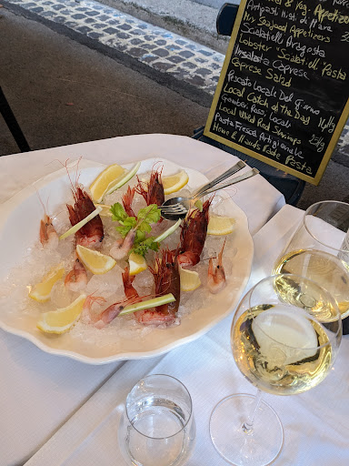 We placed our trust in our waiter who showed us the catch of the day, suggested we get the gamberi rossi and seabass steak and dissuaded us from ordering from the normal menu. Our waiter did not confirm the prices with us when we agreed with his suggestions. We should've taken a closer look at the prices on the blackboard which, after taking a closer look in hindsight, were written as /Hg and not /kg (effectively, making everything 10x more expensive than written, blackboard photo provided alongside the prawns). Our first surprise was when two portions of seabass steaks came out instead of one, but we didn't say anything or send it back because we really trusted our waiter. However, there was an even bigger surprise when the bill arrived.