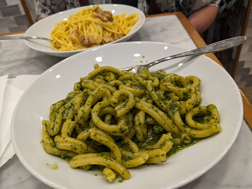 We came here around 8pm. The store was still almost full but the lineup was short. We got our pasta within 5-7 minutes from ordering. We had carbonara, regatoni tartufo, and strozapreti al pesco. All three sauces were delicious yet my favourite one was still the carbonara, which was actually the best carbonara I had in Rome, tasting as well as or even better than the other three carbonara I had had at some traditional and fancier Italian restaurants, at half price.