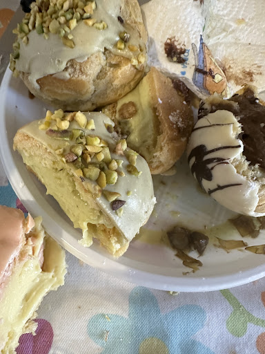 Read moreUna cosa sicura è che è tra le pasticcerie più buone in zona, hanno i loro pro e contro ma comunque ve li stra consiglio! Noi abbiamo fatto una semplice colazione con bomba alla crema, ciambella e la loro veneziana con crema (lo sfogliato più buono che hanno) La crema della bomba a mio gusto rimaneva troppo farinosa ma comunque buona. Caffè e cappuccini ottimi Sono anni che vengo qui e nonostante alcuni difetti (dal mio punto di vista ovviamente), i prodotti sono fatti da loro e veramente eccezionali.