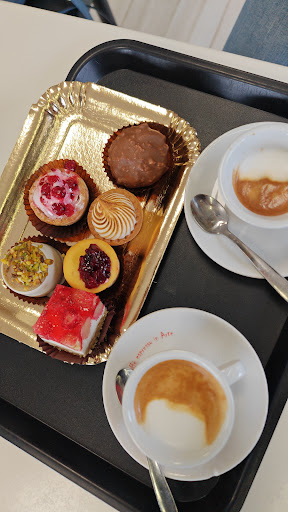 Colazione da Sartre. (Ogni riferimento è puramente casuale). Abbiamo perso caffè e pasticceria mista. Iniziamo dalla location che è periferica ma ben tenuta, moderna e gioviale, tavoli interni ed esterni. Unica pecca: servirebbe maggiore attenzione alla pulizia dei tavoli e del pavimento. Servizio: abbiamo ordinato al banco i dolci che volevamo e 2 caffè, ci è stato dato un vassoietto per accomodarsi ma non è stato proposto il servizio al tavolo. Cibo: veramente ottimi sia i dolci che il caffè; io non amo i dolci troppo dolci, per questo non ho apprezzato la meringata al limone (!) ma ho trovati tutti molto equilibrati con i sapori che si distinguono ad ogni assaggio. I miei complimenti per il...