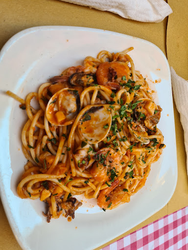 I have to be honest, this place is beautiful! Me and my fiancé came to Rome 2 times and both times we visited this place, and both times we were delighted. Inside it may not look like much, gives a very discreet look, but don’t be fooled, this place is magnificent. The food, oh the food is amazing! Especially seafood, which, in my opinion is one of the best in Rome from my experience. The service is awesome and very friendly, thanks to the charming personnel. We were always taken care of, and just felt really laid back and relaxed there. I seriously recomment everyone who reads this to visit this place. I know me and my girlfriend will next time we’re in Rome, and the next time after that too! Splendid!