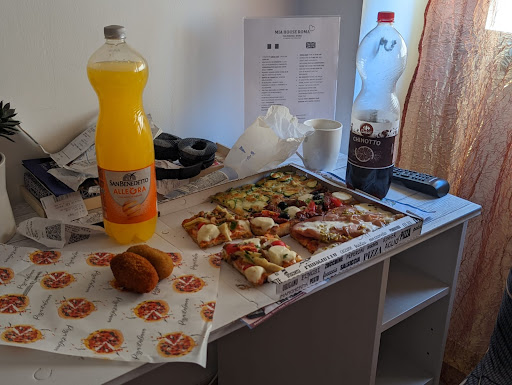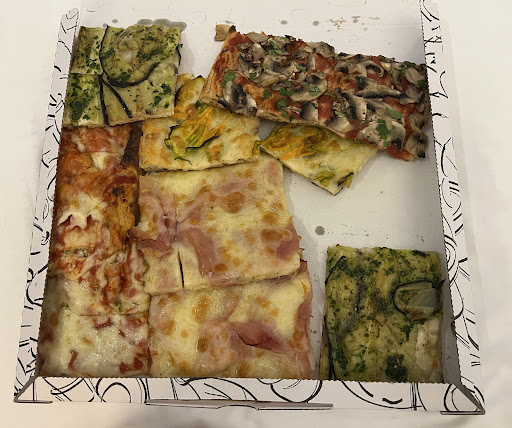 Best pizza in we have had in Rome! The crust is full of flavor and the toppings are great combinations and delicious. We went twice. You get to show the lady with your hands how big of a slice you would like, and she worked with us even though we know basically no Italian and she was kind and put up with us and smiled.) And you pay by weight of the slice, so your are not stuck with just one type of pizza. The second time, we got 4 different types and rice balls, about 2x the amount we needed, but it was so good. I loved the artichokes, and fresh tomatoes, the crust was so tasty and really shined through on that one. The sun-dried tomatoes on one of them were specifically delightful, I wish I could buy a jar of them to take back home. Then there was a mortadella (maybe, not sure, but it tasted like it) with pistachio, I have never had a combination like that, and it was divine. The zuccini pizza was also good I liked how crisp the cheese was on top! We eat there the first time, but the second time we took it back to our hotel to enjoy ice and air-conditioning. 100%...