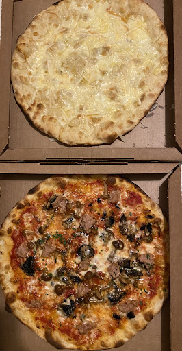 Ci dicono che dopo 10 min le pizze saranno pronte. Torniamo attorno alle 19:30 le pizze devono ancora essere infornate. Facciamo finta di nulla.