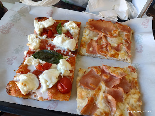 One of the things we love most about this pizzeria is the wide selection of toppings they offer. They sell pizza by the weight, which means you can try a variety of different toppings without having to commit to a whole pie. This is especially great if you're in the mood for something a little different or want to experiment with new flavors.