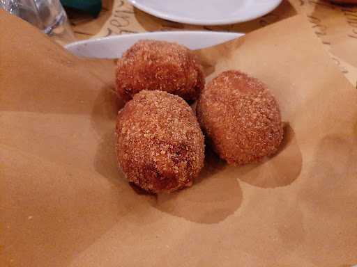 Cena con amici un sabato sera di Giugno 2022. Il locale è carino e, nell'area esterna, anche molto accogliente e caratteristico in quanto vicino alle strutture ippiche adiacenti. Dopo un pò di attesa ci sono stati consegnati i menù; c'erano state consigliate le bucce di patate ma purtroppo ci hanno comunicato che erano finite. Abbiamo optato per dei classici supplì e le pizze. La panatura del supplì era croccante e buona, il supplì discreto. Le pizze buone nel condimento ma veramente troppo ma troppo sottili; per carità l'impasto croccante è piacevole, ma una pizza del genere pesa sicuramente la metà di una pizza napoletana e comunque non sazia. Per concludere la cena, dopo essere riusciti a "bloccare" un cameriere, abbiamo preso due Tartufi di Pizzo calabro (buoni) e un trancio di Torta al Cioccolato all'arancia (molto secca e assolutamente senza il gusto all'arancia promesso). In conclusione, le pizze sono buone ma eccessivamente sottili, i prezzi del menù un pò alti, il personale di servizio un pò confusionario e poco attento (abbiamo anche assistito ad un siparietto in cui un addetto di servizio aveva accantonato e lasciato sulla piazzetta di passaggio fra la zona interna e l'esterno 3 sacchi neri di rifiuti dai tavoli; dopo un pò di minuti altri ragazzi colti da spirito di dovere si accingevano a toglierli ma il capo sala ha indicato a loro di lasciarli malgrado all'esterno lì vicino ci fossero ancora vari clienti, fino a quando è giunto un signore più adulto ad eliminarli..........diciamo che in tutto questo non ci hanno fatto una...