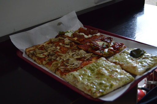 Read moreThe way it works is that they are continuously cooking a huge variety of pizzas, with great variation, normal, vegetarian, vegan. They come out of the oven quite long and rectangular. Then you choose how much of each pizza you would like, they slice it off, and you pay based on the weight. So super cool for choosing a whole bunch of different pizza types you may want to try, rather than being stuck with entire pizzas. And... amazing pizzas!!! Everything I tried was fantastic. A real local place....