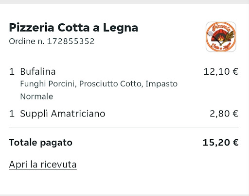 Read morePurtroppo la pizzeria COTTA A LEGNA è in declino dopo il recente cambio di gestione, che ha comunque mantenuto il nome del vecchio esercizio commerciale e il menù. La qualità degli ingredienti utilizzati, cavallo di battaglia della gestione precedente, purtroppo è diventata scadente e la pizza gommasa e non è più digeribile come una volta, evidentemente a causa della lievitazione dell'impasto che non è più lunga come una volta (72 ore). L'ultima volta presa una boscaiola, la salsiccia puzzava di vecchio e una fiori di zucca e alici, gli ingredienti erano vecchi e spappolati. Peccato perché per più di un decennio COTTA A LEGNA, il cui pizzaiolo era direttamente il proprietario, è stata una pizzeria d'asporto al top, con ingredienti freschissimi e di qualità, impasto digeribilissimo, con oltre 72 ore di lievitazione, e cottura con forno a legna, unica cosa che è rimasta...ma evidentemente questo non basta per continuare a portare avanti il lustro della vecchia gestione, davvero...