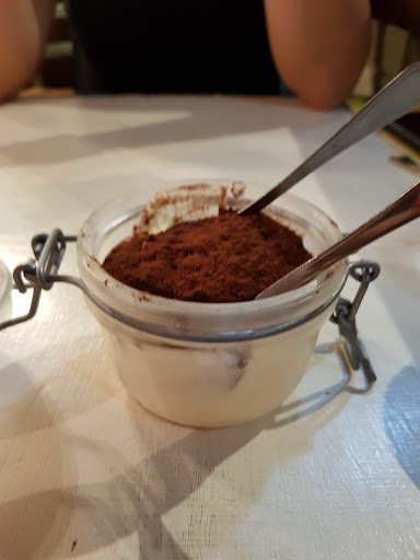 Food: pizza's are relatively small (about half an average large pizza) but also cheap (4-6 euro) and quality was good so price/quality/quantity ratio was good in our opinion. Slighty more salty compared to other pizzas we tasted in Rome. We both had one of these pizzas and then shared some gnocchi with pesto, cheese and bacon. The bacon in it was horrible (very chewy, some blocks of bacon pure unchewable fat) so we took those out. The gnocchi themselves were good, and also whole weat! But because of the bacon quite disappointed in the dish. We had a classic tiramisu for desert (€2,50) which had good mascarpone and whipped cream but I missed the liqueur/coffee flavour a bit. Small size, even for this price.