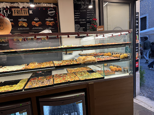 Chcete ochutnať viacero druhov rímskej pizze? Bistro Pizzeria Romana Al Taglio na ulici Via del Gobierno Vecchio je na to dobrá príležitosť. Ponúkajú tu obdĺžniky pizze s rôznou oblohou. Skúšame tri: slanina, syr pecorino a paradajka; prosciutto crudo s mozzarellou, a hubovú. Chrumkavá pizza, hrúbka medzi "rímskou" a "neapolskou". Cesto mi chuťou pripomína kváskový chlieb. Opečené prosciutto chutí ako opekaná mäsitá slanina. Pizzu tu môžete konzumovať priamo v podniku alebo aj "z ruky" na ulici. Jeden obdĺžnik stojí od 2,50 do 5 eur, na nasýtené sú potrebné tak 3-4. Tento podnik nie je ideálny na dlhé vysedávanie a rozhovory nad pizzou - len zjesť, vychutnať a pokračovať v objavovaní Ríma. Majú tu však toaletu a platiť je možné len bankovou kartou.