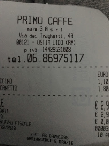 Read moreOttimo bar-caffetteria: aperto praticamente tutti i giorni, aperto al pubblico dalle 6 del mattino. Prodotti in vendita: caffè (niente male quello amaro ma è possibile provare anche lo schiumato ed il marocchino), cappuccino, cornetti artigianali di vario genere (possibile anche la farcitura al momento con crema, nutella, ricotta), spremuta di arancia (con cubetti di ghiaccio). Pranzo: panini (menù fisso), ma una volta ho provato anche la pasta al forno. Mi sono anche recato qui per la preparazione del catering (tramezzini, pizzette, crostate con la marmellata di 2 gusti differenti, panini). Servizio al tavolo (tavolini circondati da una siepe all’esterno che si affacciano su via dei Traghetti da un lato e via Baleari dall’altro), locale ben tenuto. Difficile il parcheggio auto...