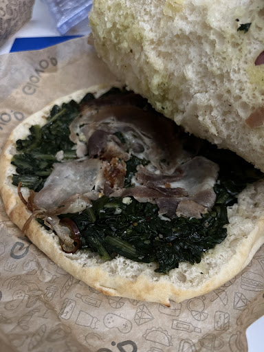 Read moreHo ordinato tramite Glovo, quindi non posso recensire servizio e ambiente. Il cibo, però, non mi ha pienamente soddisfatto. Ho scelto una focaccia con porchetta e cicoria ma, come si può vedere in foto, di porchetta c’era giusto un assaggio. La cicoria era buona, ma di certo non valeva il prezzo che ho pagato. Peccato!