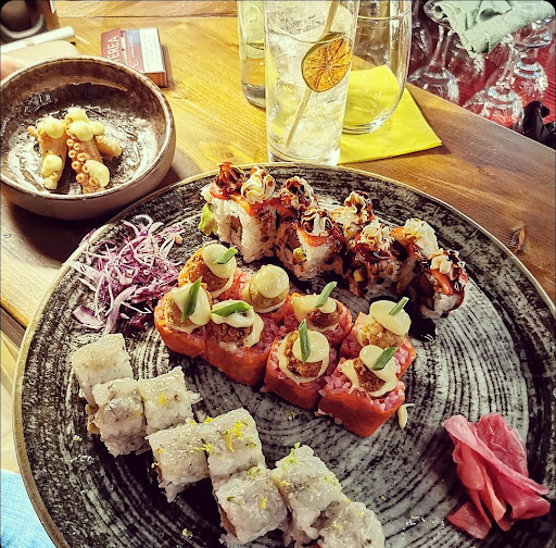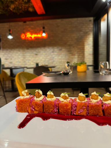 Read moreIl mio migliore amico mi ha parlato molto ma molto bene di questo posto, dopo una settimana è riuscito a convincermi con successo, ha totalmente superato le mie aspettative il locale è nuovo e da fuori è molto carino con un’ingresso elegante, trovi il bancone con scaffale decorato da bottiglie importanti, buon assortimento di vini e calici perfetto per chi come me beve poco, entrando più avanti si entra in un ambiente molto carino non troppo luminoso e non buio Le pareti grigie e le lampade esaltano i quadri molto ma molto carini, abbiamo ordinato ottime pietanze, per iniziare abbiamo preso dei nachos e le due salse di accompagnamento erano squisite, mi ha sorpreso molto il guacamole assaporando ogni nacho intinto nella salsa di sentiva l’avocado in pezzettini freschi insomma un piacere per il palato, i roll picanha squisiti, nigiri al salmone che ve lo dico a fare salmone ottimo buono e fresco, a seguire filetto di picanha è sorprendente la carne è cotta al punto giusto tenere e saporita un pezzo tirava l’altro infatti non siamo riusciti a resistere e siamo finiti per prendercene una terza porzione i gamberoni in pasta kataifi sublimi accompagnati dalla salsa agropiccante era eccelso; una combinazione perfetta croccante al punto giusto gambero tenero e fresco. Yakisoba al pollo buonissimo consiglio un po’ meno soia perché era leggermente salato per sciacquare abbiamo preso una cheesecake al mango anche quella buonissima, abbiamo accompagnato il tutto con un calice di ribolla e uno di chardonnay . Il proprietario è gentilissimo e disponibile tornerò presto...