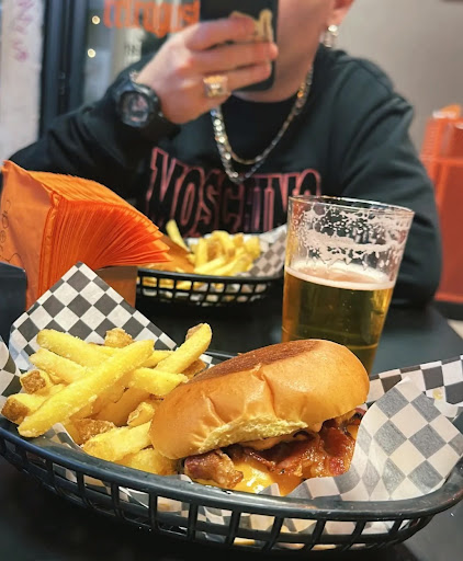 Read moreUna piccola hidden gem nel cuore del quartiere di Centocelle. Il locale è un pub di dimensioni modeste, con un'atmosfera che volutamente, a mio parere, richiama il grunge industriale degli anni 90. I posti a sedere son nel giusto numero per far sì che si riesca a conversare con le persone a tavola senza dover alzare eccessivamente il volume. Veniamo però al punto forte: i panini. Io e la mia ragazza abbiamo, in quest'ultimo periodo, il pallino fisso per gli smash burger. Personalmente ho preso l'algérienne con una birra alla spina; il panino è ben studiato, con un'ottima combinazione di sapori. A parere mio ogni singolo ingrediente è ben distinguibile e si sente la qualità della materia prima utilizzata. Son rimasto sbalordito sia dalla cottura che dalla qualità del bacon utilizzato. Per me è stato un concerto di sapori per il palato. La birra era buona, ma il panino è stato letteralmente la star dello...