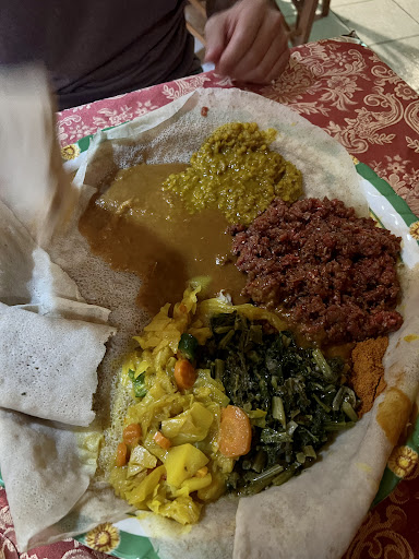 This was one of our favorite dinners in all of Italy and some of the best Ethiopian food we've had ever! The host, Giovanni, was incredibly friendly, kind and made us feel comfortable and made sure we had our food prepared just as we like it as we ordered the kitfo, which is a Berbere spiced beef dish traditionally prepared raw. Many people like it slightly cooked but he confirmed to make sure we had it prepared to our likings (YOU MUST HAVE IT RAW-it is so addicting!) The meat was perfectly seasoned and all the veggies were flavorful and comforting. the injera was also tasty. The prices are very fair and the service was quick. His wife was the cook, and it was just nice to be at a cozy family run place where it feels like friends are cooking you dinner :) You must go- I will certainly return when I go back to Rome and will try the chicken and egg dish as it looks INCREDIBLE! Thanks Giovanni :) I wish I took a better photo but we we're hungry and it's impossible not to dive in when this aromatic food its placed in...