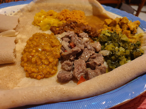 Read moreReally enjoyed the food despite its particular appearance, but that's maybe because I haven't tried Ethiopian cuisine before, so my opinion on it might not be the best. There are both spicy and non spicy dishes and if you happen to be vegetarian, you'd like to know there are many vegetables among them. The restaurant is a bit cramped, so you'd better make a reservation else you won't even find a single seat. The service was fairly good, I've tried the buffet service which includes an appetizer and a mix of what's listed on the menu on an all-you-can-eat formula, drinks are not included. The staff is courteous, and will gladly offer you help in choosing. Would soon try the full course instead to better check how's...