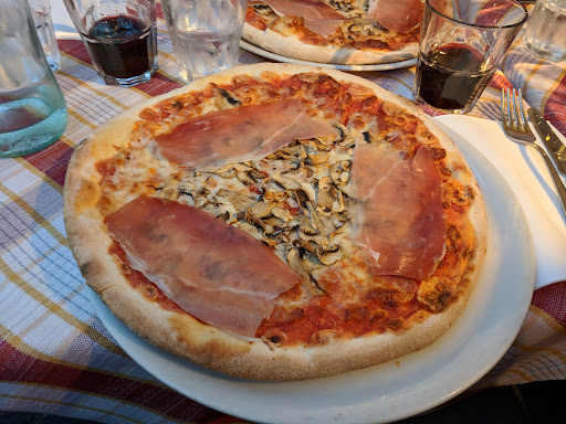 We really enjoyed our meal there, as for probably everyone on the terrace. Everyone was smiling and laughing around us. We all ordered pizzas. The eggplant one and the gorgonzola one were the best, mostly because of their perfect crust. Mine was a mushroom/prosciutto one, and the crust was harder (but still good). Their house red wine is very average. I would recommend going for something else or to order a bottle of wine instead.