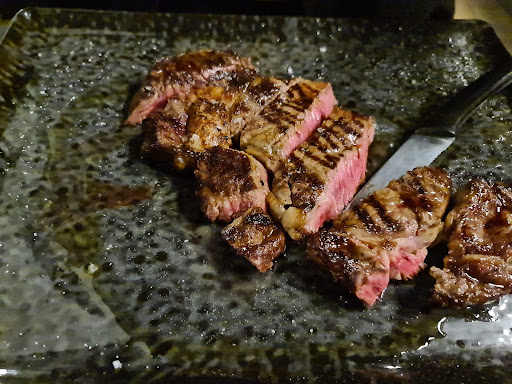 Per tutto questo insieme a due calici di vino rosso e un caffe, abbiamo speso 93 euro con ben 3 euro di sconto, che dire ci sta? Alla fine il servizio eccellente in un 1h avevamo mangiato, la ricerca della carne di qualità mi ha fatto godere va detto. Da rivedere le figure giovani del posto che mostrano poca volontà ed espressività nel servizio. Parentesi ( sono andato in bagno per lavarmi le mani e quasi mi è stato impossibile perché c'erano i ragazzi della cucina a cambiarsi e lavarsi nel lavandino sinceramente è stato un siparietto che mi ha fatto sorridere ma allo stesso tempo mi ha lasciato...