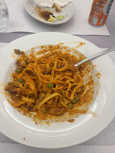 Then the beer came and after a little wait, so did the ravioli and the spaghetti. You read that right: only the spaghetti and ravioli, no salad. Hopefully, we waited for the salad to come. But no, nothing came. After a while the waiter came outside again so we asked where our salad had gone. He replied with "salad?". And then he went inside and came back with only balsamic and salt. So we thought maybe they still need to prepare it and waited, again very hopefully, but no.
