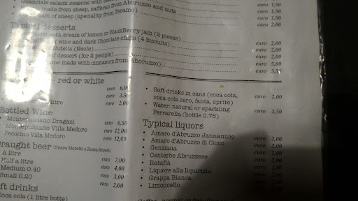 Overall it is a mildly nice place for tasting arrosticini, probably they should make a special offer for taking bunches of arrosticini, because someone maybe it is happy with few, but if you want more the dinner become to be inappropriately expensive for eating most typical abruzzese meat...