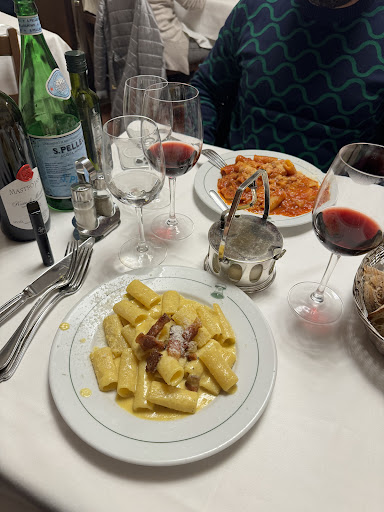 Read moreOut first night in Rome we decided to come to this restaurant for its great reviews and rich history! It also had a local feel to it and thought it would a great meal to start of our stay in Rome. I called in to make a reservations and they kindly squeezed me in on the same night. Upon arrival we were warmly greeted and seated next to another couple. We were handed menus and did not see our waiter for about 30 minutes which was extremely disappointing! To not be offered a drink or at least water for 30 minutes is unacceptable. I almost attempted to waive him down multiple times with no avail. Finally, we order with our waiter and of course they did not have the seafood risotto. Instead I order the traditional cacio e pepe, my girlfriend ordered the Ravioli, and we wanted to try the famous fried artichoke as . Along with our meal we ordered a bottle of their house wine which was excellent, from the region of Montepulciano. Moments later, our waiter passes by with our entrees and I ask him what happened to the fried artichoke. His response was " it is Italian tradition to eat the entree before the appetizer...". This was the most disappointing part of the entire meal. Dont say a blatant lie to excuse yourself for whatever reason that the fried artichoke was not ready. I took another 30 minutes for the fried artichoke to arrive and he added on the fried, cheese zucchini instead of just apologizing. Of course we did not stay for dessert for we had already spent about 2:30 hours at the restaurant and were ready to go back to the hotel. The food overall was good but bad service and an dishonest waiter makes it taste...