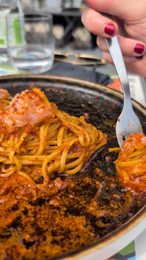 Tra i primi il nostro preferito è sicuramente la "A.o.p.", un tagliolino, aglio, olio, peperoncino, tartare di gambero rosa, crumble alla n’duja; buonissimo, anche se immagino limitato dalla stagionalità, lo "gnocco alla zucca", delle chicche con crema di zucca mantovana, colatura di gorgonzola e cicoria croccante. Molto abbondante la carbonara, una mezzamanica, uovo, pecorino romano, guanciale salumificio Sano. Personalmente, anche se adoro i classici della tradizione romana e li uso spesso per misurare quanto mi piaccia o meno un posto dove andare a mangiare, non è il piatto per il quale tornerei da loro. Ho trovato il preferito come detto sopra e vorrei riuscire a provare il pad thai (fettuccine di riso, gamberi, lime, tamarindo, soia, salsa di pesce, arachidi, germogli di soia, uovo, zucchero), che purtroppo non era disponibile quando l'ho ordinato.