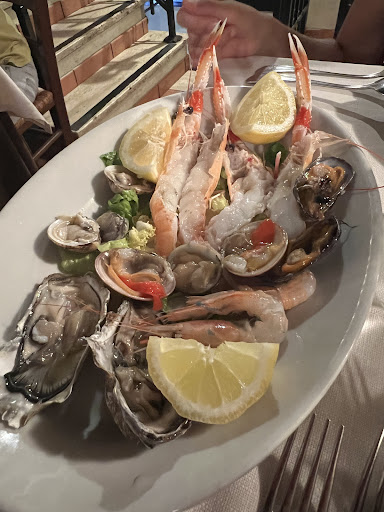 My companion and I walked in for lunch and were quickly seated, although the restaurant was fairly busy. We ordered the sea bass carpaccio & truffle appetizer, fettuccine with truffles as the first course, and fish baked in a salt crust as the second course. Everything was absolutely delicious and wonderfully presented. The presentation was thanks to our friendly and efficient waiter who had a large role in food preparation. I was facing the kitchen, so I had an opportunity to watch him work. He removed the salt crust from the fish, de-boned it and filleted it beautifully. In between courses we were also offered samples from the kitchen which were all excellent. We got to try mussels and their famous seafood pasta. I think you can order anything at this restaurant and it will be great. After dinner coffee is always served with a complementary collection of cookies which is a nice gesture.