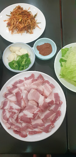 Our group of 5 had a pretty bad experience here. The only reason I gave this place 2 stars is because the food was pretty good. Everything else was terrible. We waited 10+ minutes for a server to wait on us. Before someone took our order, one of the waiters literally took 2 menus from right underneath our noses while we were in the middle of looking at them. Didn't even ask. Just pulled them out of our hands. They later told us that they only had 5 menus. That's right - FIVE menus for a place that can comfortably seat 38 customers. We finally get around to ordering and the same guy from before had the audacity to try and snatch my menu from right in front of me. Here I am pointing to it and asking our waitress questions on something. Then we finally get our Soju but not the water we ordered. Then another guy comes and brings plates and silverware/chopsticks to us. He hands them to me and asks me to pass them down to the rest of the people at the table. I basically set the table for us. Just wait, there's more. There's zero ventilation in this place. Someone was cooking barbeque at their table and the place filled with smoke. Every. Single. Person in that place was sneezing and coughing like crazy. Even the wait staff! One person in our group had to wait the rest of the meal outside. All in all this wasn't worth the money. Had the service been better and the place not been stifling hot with zero smoke ventilation I would've given this...