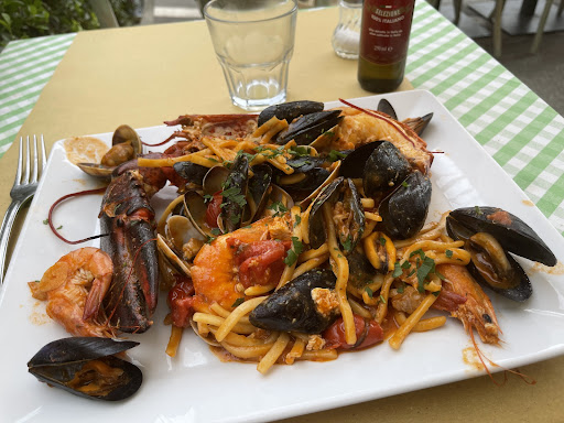 Until we received the receipt of a total of 80 euros! The 'charming' waiter selected a food platter on the menu of 20 euros, with a lot of expensive frills for which we never asked. Extra mozzarella €8, extra artichoke €8, and extra bruschetta €8 etcetera. At our arrival we clearly stated, to have only some drinks with a little thing to eat. For which we eventually paid an exorbitant price. And instead of the house wine, he brought 2 expensive Chianti's.....