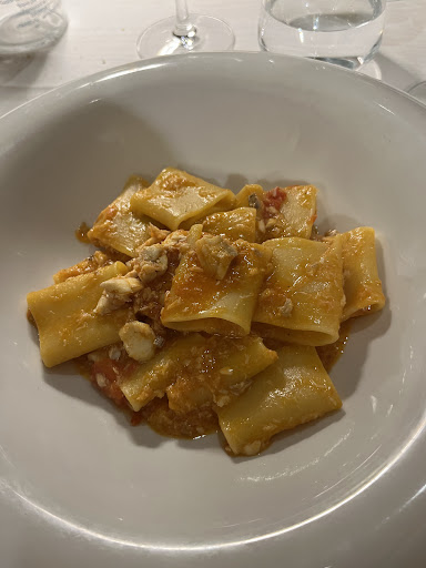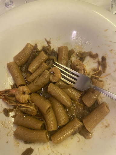 Read moreEsperienza tremenda, locale scelto in base alle recensioni di Google, col sennò del poi incomprensibilmente alte. Servizio opprimente: non riuscivamo a finire una frase senza essere interrotti. Arriva l’antipasto, stavamo finendo un discorso finché il cameriere non ha deciso di “spronarci” in modo abbastanza irruente a mangiare subito prima che si freddasse l’antipasto. Antipasto con gamberi rossi COTTI e non puliti, c’era ancora l’intestino verde che abbiamo dovuto togliere da soli, ma fino a qui nessuna lamentela perché sono stata abituata a non disturbare il personale che lavora per cose su cui si può passare sopra, finché non arriva il secondo, i paccheri con carciofi e gambero rosso: 20€ di piatto per dei paccheri con 3 GAMBERETTI (come si può vedere dalla foto) anch’essi non puliti. Faccio presente a questo punto, dopo la tolleranza già dimostrata con l’antipasto, alla cameriera che non avevo mangiato praticamente nulla, e lei gentilmente fa finta di niente. Arriviamo quindi alla cassa per pagare, spiegando tutta la situazione e la gentile signora da un conto di 80€ decide di farci pagare 70€ (Quando ripeto io il mio primo lo avevo a malapena assaggiato). Esperienza che...