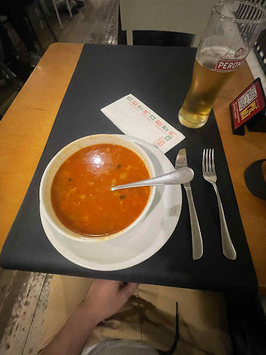 Soup of the day ( 11⬠) ( vegetable soup ) felt like you having sip of extremely hot water with vegetables thrown in and boiled for 3 minutes , no salt, pepper ot any other spices added , , not to forget before taking it out to me they couldnt bother to clean plate to ''presentative level'' Kotlet with salad ( 16⬠)- Again, salad seems like its just been taken out of some cheap 1 euro bag, thrown onto plate, with breaded chicken which was not only super slim for meat, but also gave you full experience on chewing on sandals ,but not only that , it also was dry like sand ( lucky enough i had also peroni beer, which was saving situation here ) , by trying to cut it sometimes it went sliding across the plate with my knife , yes thats how hard it was, felt like its been made early morning cooked, and then reheated while im there which normally turns food to turn out like that. Peroni beer (7ā¬) ( can't complain, its good beer , was only reason i could stay there ) 1.5⬠if you don't want to act like somalian and eat with hands. Yes they charge you 1.5⬠for cuttleries.