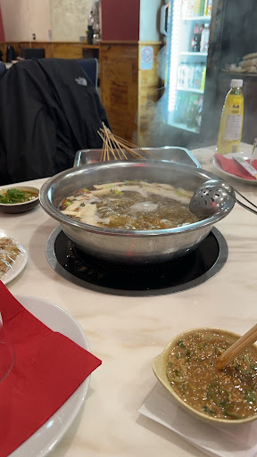 Tutti e tre abbiamo ordinato due porzioni di noodles, una porzione di riso con costolette di maiale alla brace, un piatto di cavolo aceto, il fondo della vecchia pentola di anatra e 89 spiedini. I noodles hanno un buon sapore, ma il mio amico ha detto che dovrebbero avere il sapore di noodles surgelati. -Le costine di maiale cotte nuovamente erano molto secche, nere e bruciate, non si potevano più masticare, sembravano congelate da molto tempo (gusto personale) -I contorni nell'immagine del menu di riso con costolette di maiale alla brace includono un pezzo di uovo fritto e alcune verdure verdi. Ma quando arrivò c'erano solo un pezzo di broccoli, alcune noccioline e costolette di maiale alla brace e niente uovo fritto. Alla domanda sul perché non c'erano uova fritte, la prima volta il cameriere mi ha spiegato. Ha detto che oggi non c'erano uova fritte, la cucina era troppo occupata. La seconda volta il capo ha spiegato che il menu era precedente al 2016. Mi ha detto che mi avrebbe fritto un uovo dopo che la cucina avesse finito. Data la situazione in quel momento, non volevo aspettare oltre, il riso aspettava già da molto tempo prima che arrivasse il riso (ma quando il capo mi ha detto che il riso sarebbe stato presto cotto a vapore, le ho chiesto per aggiungere altro riso e lei accettò. gratificante) -Ma nessuno mi ha informato delle modifiche al menu prima o dopo l'ordinazione, e non capisco perché il menu precedente al 2016 sia ancora in uso nel 2023. -Non è consentito bere l'acqua del rubinetto, è possibile ordinare solo acqua minerale in bottiglia. Le polpette di carne e le polpette di manzo Chuan Chuan Gong hanno un sapore un po' strano, forse perché i bovini europei non vengono castrati. -Il fondo della vecchia pentola per anatre. Tutti e tre ricordavano che nel menu c'erano 20 euro e 25 euro dopo il pagamento. Lo spezzatino Yuanyang costa 12 euro. All'inizio abbiamo chiesto al cameriere se sarebbero stati 16 euro se avessimo sostituito la zuppa chiara nello Yuanyang Hotpot con Laoya Hotpot. Il cameriere ha spiegato di no, erano 22 euro. La metà dello Yuanyang Hot Pot costa 6 Euro, ma se passi allo Yuanyang Hot Pot dovrai aggiungere 16 Euro perché contiene carne di anatra, quindi il costo è incluso. Più tardi, abbiamo semplicemente ordinato Yuanyang Hot Pot. Quindi siamo rimasti molto colpiti: il menu nero che abbiamo visto in quel momento era di 20 euro. Ma più tardi, quando ho visto il conto e ho fatto domande, ho guardato il menu dorato e ho scoperto che erano effettivamente 25 euro. Non sappiamo quale sia...