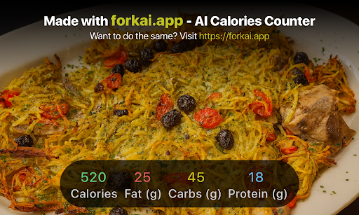 Read moreI recently had dinner at this cozy restaurant, and honestly — the food was delicious and very well-prepared. The dish looked appetizing, with a golden crispy crust and rich flavors — you can tell the chefs here know what they’re doing. The portion was generous, served hot and nicely presented. I also calculated the calories of this dish using the service shown on the photo attached to the review. It turned out to be super convenient and fast — everything was calculated in just a few seconds! I’d definitely recommend trying this calorie-tracking service — it makes following your nutrition so much easier, especially if you’re keeping an eye on...