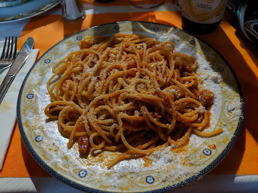 We chose this restaurant because it was off the main/ more touristy street, and were not disappointed. We arrived just after they reopened for dinner (we didn't know that, as there was no signage) so the owner & servers were still trying to get everything ready. The owner even came by to tell us that their kitchen was just warming up so pastas would take longer, but any antipasto would come on time. Their Melanzane all parmigiana (eggplant parmigiana) I think was on the antipasto menu. It was better than what I got from a different restaurant as a Primo (first course) which disappointed me (their cheese was more burnt). I also got Alici Fritta (fried anchovies -- it came as the 2nd course and was a huge portion for 14Euros. Husband got Polipetti Napoletana (stewed baby octopus) and Abbacchio Scottadit (grilled lamb ribs). All were very tasty. As you notice, we're not pasta people. We prefer seafood, which was plentiful...