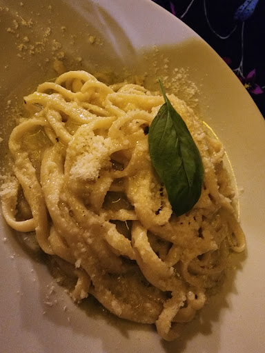 Read moreService and atmosphere were lovely. Food was middling at best. We had the anchovy, tomato, bruschetta, as well as the Linguine Limone and Caccio e Peppe, the latter based on one of the reccomendations below (the lady lied or had her taste buds removed). The anchovies were canned, not the typical Italian style served on bruschetta. The pasta was a little bland, the water wasn't salted and some pieces were undercooked. The sauce didn't stick, which leads me to believe that it wasn't finished properly. Regardless, there are better places I'm sure. Oh, we had the pizza too. The crust was just a bit too tough, enough to notice and it wasn't saved by the toppings. Overall it wasn't the worst we've had. Unfortunately this was a miss. However, the house wine was good and the service and atmosphere really was lovely. The manager was terrific, they were very friendly and gave us complimentary limoncello. If you're in the area and don't really have options, then try this place. It seems...