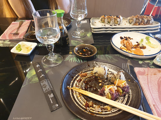 Read moreScelto come variazione ai soliti eyce in zona si è dinostrato accogliente ed io sono in carrozzina elettronica, spazi e bagni accessibili, ambiente anche se affollato caldo ed accogliente, su molti piatti un uso un po troppo spinto della salsa di soia o comunque del glutammato tipo nei ravioli, deludente la scelta e le porzioni di shascimi, ma in compenso i loro crudi coloratissimi si sono dimostrati di gran livello su molti olio al basilico ben calibrato al punto da farti desiderare del pane per fare scarpetta anche la rucola rivestita di salmone ha fatto la sua squisita presenza segnalo spigola e spiedino di calamaro sopra la media per gusto e qualità, deludente il bao grosso ma con pochissima farcitura quasi industriale, graditissimi i gamberi al limone forse uno dei loro piatti meglio riusciti o quelli agli anacardi, zuppa di miso equilibrata e non invadente come sapore, consigliato, si soprattutto se siete in gruppo o fidanzati considerato che i giorni festivi di domenica come la mia visita a 20.90 euro è...