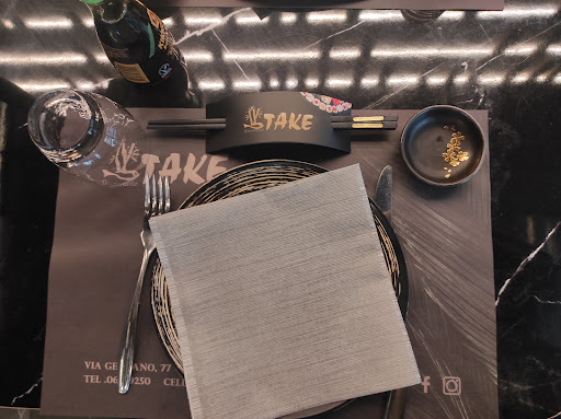 Ristorante nuovo, strepitoso, gestito dai titolari del già rinomato Ristorante Cinese/Giapponese Allegria, che frequentavo assiduamente e con grande soddisfazione, prima della parentesi pandemica. Insomma, dopo parecchi mesi di assenza, ieri decido di portarci a pranzo un'amica e chiamo, convinta che si trovino ancora nella vecchia sede, all'angolo con via Poggi d'Oro, e invece - che sorpresa! - scopro che il mio Allegria si è spostato di qualche decina di metri, su via Genzano, e che adesso si chiama Take: nuovissimo, fichissimo, con un menù che conserva ancora molti dei piatti cult del passato, ma con una quantità incredibile di nuove proposte. Troppo incuriosite abbiamo optato per una volta per l' 'all you can eat' e siamo state soddisfattissime della nostra scelta: d'altronde, benché amanti dell'opzione 'à la carte', vi assicuro che sarebbe stato difficilissimo scegliere cosa ordinare: troppi piatti mai provati prima e sin troppo interessanti...! Ci siamo deliziate con le tartare e i carpacci di pesce, tutti davvero ottimi, freschissimi e (dopo il caldo patito nella mattinata) molto rinfrescanti e as-so-lu-ta-men-te da provare, per poi passare ai sushi, agli uramaki, agli spiedini di gamberi, ecc., passando per i classici ravioli al vapore, gli xiaomei di gamberi, gli spaghetti di riso cinesi e altre delizie, per poi tornare di nuovo sui carpacci... tutto freschissimo ed estremamente gratificante sia per l'occhio che per il palato. L'unico consiglio che darei al personale (d'altronde sempre attento, impeccabile e gentilissimo), potrebbe essere quello di chiedere, prima di iniziare a servire, se i clienti gradiscono accompagnare le pietanze scelte con aceto di riso, salsa piccante, zenzero o wasabi, anziché portarli dopo su richiesta (perché alla fine non resisti neanche quei 30 secondi che ci vogliono per far arrivare le salse e ti mangi tutto così com'è, perché le portate sono davvero troppo invitanti!), ma si tratta di un particolare di poca importanza e comunque siamo arrivate nel ristorante talmente tardi (intorno alle 14.30), che forse non abbiamo trovato questi condimenti sul tavolo, perché stavano già sparecchiando. Anzi, forse dovremmo segnalare l'estrema disponibilità e cortesia con le quali siamo state accolte anche a un'ora così tarda. E anche quando abbiamo sforato abbondantemente l'orario di chiusura, nessuno è venuto a disturbarci e abbiamo potuto finire di pranzare in santa pace, senza quell'ansia sottile che spesso e volentieri viene somministrata ai clienti tardivi dallo sguardo perforante di qualche cameriere che non vede l'ora di tornarsene a casa o da qualche frase perentoria sull'imminente chiusura del locale. Al contrario, tutto è stato perfetto: accoglienza, scelta sul menù, cibo, atmosfera, organizzazione, pulizia, educazione, cortesia e capacità professionale del personale... un vero Paradiso sia per lo spirito che per il palato. Grazie, Take, per la piacevolissima esperienza! Morale della favola: IO già non vedo l'ora di tornarci... VOI, se non l'avete già provato, ci DOVETE andare! Buon...