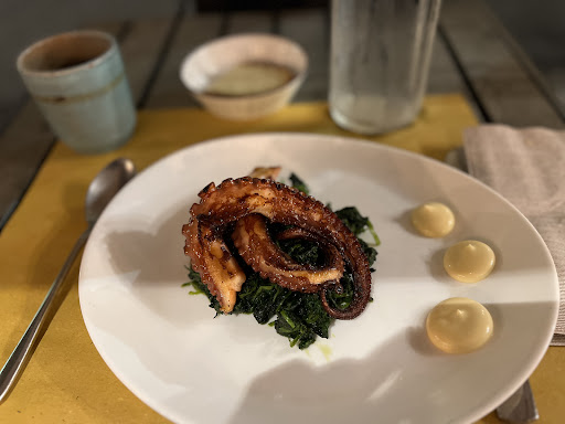 Per circa 30 euro, ho gustato un delizioso antipasto di purè di fave con cicoria, seguito da un ottimo polpo, anch’esso accompagnato da cicoria. I sapori erano genuini e ben equilibrati, si percepisce l’attenzione che viene dedicata sia alla selezione degli ingredienti che alla preparazione dei piatti.