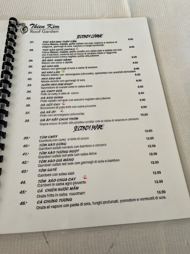 Thực đơn tại Ristorante Thien Kim Roof Garden phong phú và đa dạng, kết hợp giữa ẩm thực Ý và các món ăn Á Đông, đáp ứng mọi sở thích ẩm thực của thực khách. Các món ăn được chế biến từ nguyên liệu tươi ngon, trình bày đẹp mắt và hương vị đặc biệt. Đội ngũ đầu bếp chuyên nghiệp và nhân viên phục vụ tận tình, chu đáo, luôn sẵn sàng đáp ứng mọi yêu cầu của khách hàng.