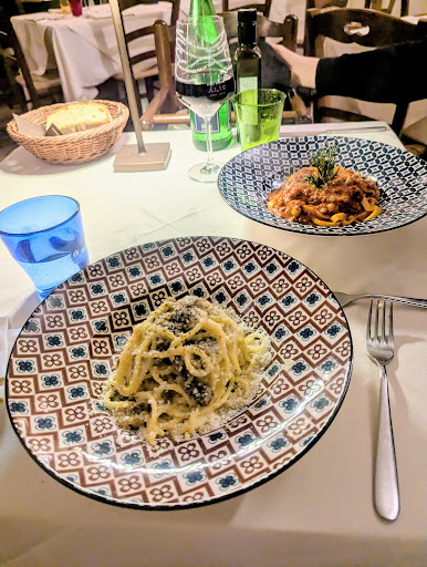 Fortunately, the food at Virginiae was fantastic. Our antipasti was the assorted crostini (decorated with various toppings such as red pesto, green pesto, and olive oil), and it was good enough that it could have been an actual main dish itself. As good as our antipasti was, however, our main dishes were better. I ordered the cacio e pepe and my wife ordered the tagliatelle con funghi, and we were both very pleased with the quality of our food - the pasta was cooked perfectly, the sauce on my cacio e pepe was flavorful and the funghi on my wife's tagliatelle was fresh and well-seasoned. Our server told us that Virgniae specialized in local Roman cuisine, and I can't help but agree - our food was authentic, fresh, and really highlighted the strengths of dining at a more local restaurant in Rome. We finished our night by both ordering the tiramisu, and I can confirm that it was some of the best tiramisu we had in all of Rome (and we ate a lot of tiramisu!).