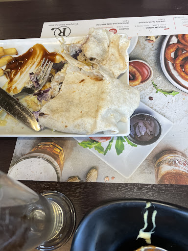 Read moreNon quasi male come ambiente e servizio Anche se devo dire che ho trovato e visto i due responsabili veramente svogliati e spocchiosi Nel fare il propio lavoro Ma questo pare una consuetudine in altri locali della stessa catena Detto ciò ieri ho trovato disgustose di sapore e consistenza le costolette fatte da questo locale Piatto bollente per mantenere fredde le stesse, che è propio un controsenso Almeno negli altri locali sono tiepide Carne veramente ancora da cuocere bene fin troppo e sopratutto da togliere del tutto la pellicola di grasso Visto che ne dovrebbero essere sprovviste e sopratutto dovrebbero essere davvero tenere come un burro D'altronde però devo dire che invece per quanto riguarda le alette di pollo e le tenders Ottime davvero sia di cottura e consistenza Ottime e bollenti quelle fritte E grandi a differenza di altri locali e sopratutto polpose le stesse alette e cosette Molto buone davvero Ci tornerò volentieri per le stesse Sperando che siano ottime come questa volta Ritornando alle costolette Da sconsigliare davvero per la mancata bontà della carne e sopratutto non idoneità della cottura Tanto è vero che anche in altro tavolo a fatto notare sia la freddura che la cottura Caffè e dolce visto che sono un franchising non l'ho voluto prendere Perché magari è tanto e uguale agli altri Mi dimenticavo di dire e aprire una parentesi per i nachos offerti Indecentemente duri e stantii Anche questo locale propone salse apparte Nonostante proponga la maglionese e il ketchup nei dosatori di prima E peggio ancora i giri successivi delle costolette e delle alette sono ancor più miseri degli altri Costolette davvero piccole...