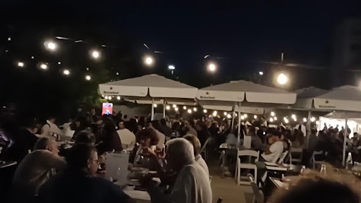 Read morePassando in bicicletta ho notato questi tavoli all'aperto e biliardini, incuriosito mi sono avvicinato e ho capito subito che nel nostro quartiere qualcosa di carino e nuovo stava nascendo! Prenoto e voilà ci ritroviamo con la tutta la famigliola a trascorrere una piacevolissima serata all'aperto!! L'atmosfera è quella giusta, rilassata, c'è la musica in sottofondo, ma stavolta non da fastidio, anzi! Ordiniamo, arrivano le birre e il fatto che arrivino belle fredde, già mi piace!! Poi i fritti e quelli non mi fanno proprio impazzire, poi ecco le pizze cotte rigorosamente a legna come Dio comanda!.... buonissime davvero! Ottimo l'impasto e il condimento! Si avvicinano più allo stile Napoletano che a quello Romano, per intenderci non sono sottili e croccanti, ma soffici e gustosissime! Ne ho provate diverse e mi sono piaciute tutte quante! Un'altra sera ho voluto provare gli Hamburger, se non erro ho preso quello che si chiama Sagrada Famiglia, aveva tutto doppio! Doppio bacon, doppio hamburger, pomodoro, insalata e tanti altri ingredienti.... ragazzi era la fine del mondo!! Abbiamo assistito ad un piacevolissimo spettacolo di Cabaret e la seconda volta a uno spettacolo con due bravissimi attori comici che hanno coinvolto simpaticamente il pubblico!! I camerieri sono cortesi e disponibili!! Adatto alle famiglie con bambini, l'area infatti è recintata e quindi sicura!! Verso le 22 c'è una specie di ricambio generazionale!! E ci sta tutto!! Un plauso agli organizzatori che non lasciano nulla al caso!! Complimenti!! Ci torneremo...