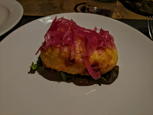 Read moreGreat service and extensive wine list. The menu was fairly unique and seemed non-traditional. My wife got a salmon baked potato. It had cuts of raw salmon on top and a pesto sauce. She loved it. I got a steak. The waiter asked me if I wanted it "raw or medium". He strongly suggested that I have it medium, so I accepted that (raw meat didn't seem appetizing anyway). In hindsight I think he meant "rare", and he urged me to get it cooked medium because he could tell I was american and he figured we don't like rare meat. But it was cooked well done. I don't like well-done steak, but I ate it anyway and it was good. It had a nice sear on the outside and big flakes of salt. It was tender, and the fat wasn't chewy. It would've been perfect if it were cooked rare. I won't deduct a star for the miscommunication, though. All-in-all this was a great place that I'd...