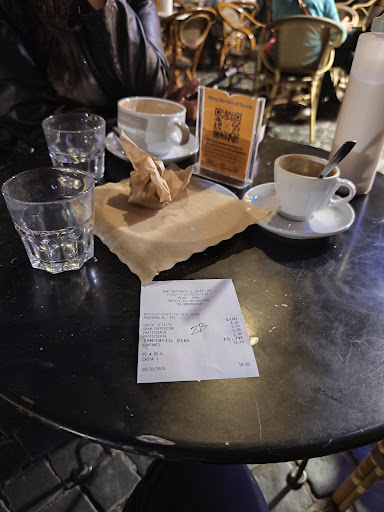 Read moreA classic Roman caffe with adaptations for us foreigners. They are very happy to guide you through the many choices you have from a simple caffe espresso that you drink at the bar to a shakerato, espresso with ice, shaken until cold and frothy. A lovely treat on a hot day. Expect your caffe con zucchero (with sugar), unless you ask for it otherwise. As with any new country, ask how they do things, or watch and learn. Here they order at the counter and then you give your receipt to the baristas who will make it for you. Then you can drink it there or take it outside, to a table or if you ordered togo - keep a walking! They have nice snacks and treats as well, with patio seating and menus in English...