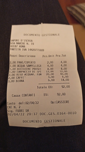 Read moreWorst meal in Rome! We searched on Google map for restaurant for a family dinner and got this restaurant with a 4.8 rating. We had high expectations but it turns out to be the worst dinner experience I've ever had. I ordered Pasta Carbonara, my husband Pasta Amatriciana, my father Pasta Bolognese and my mother Pasta with fish of the day. I got my Carbonara first. I was shocked at the first sight, because it looks like a pile of Spaghetti swimming in a pool of cream. It tastes even worse: too salty and not fresh at all. I waited for a couple of minutes, but other dishes we ordered didn't seem to come. So I have to start eating alone. It turns out to be totally wise because other dishes didn't come until more than ten minutes after my empty dish is taken away. The owner of the restaurant didn't apologize at all. The Amatriciana and the Bolognese are absolutely awful: way too salty for my husband to finish and my father had to put some sauce on the bread to finish. The pasta with fish of the day is instead too bland and the mussels don't taste very fresh. We complained to the owner after paying the bill, but he behaved very arrogantly. He was not willing to understand the complaint and finally apologized for only the slow service with everything but sincerity. I seriously have no clue how this restaurant could get so good reviews. In general, I would totally recommend NOT to go to this...