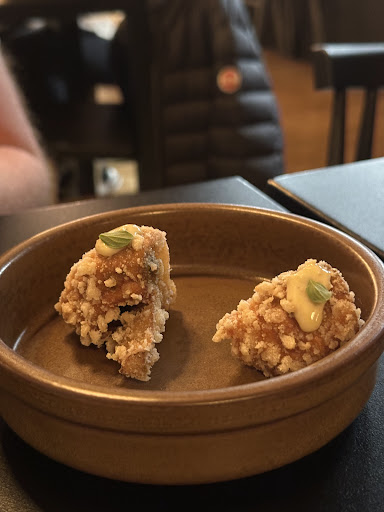 Read moreSiamo stati di lunedì sera a cena in 4 persone, nel momento in cui siamo arrivati all’interno del locale era presente un tavolo di circa 9 persone che doveva ancora ordinare ed un altro paio di tavoli che stavano per andarsene (ci tengo a specificare questo). Ci viene presa l’ordinazione con gentilezza e professionalità, specifico una mia allergia alimentare abbastanza pericolosa, chiedendo anche informazioni su eventuali contaminazioni ed il ragazzo mi rassicura sempre con professionalità ed educazione. Prendiamo due antipasti da dividere, nello specifico “Il crudo e la brace” e dopo circa un’ora (letteralmente, non per dire) arrivano solo i crudi e scopriamo che la brace in questo antipasto proprio non è contemplata. In questa ora tavoli arrivati dopo di noi (due per la precisione per un tot di 9 pax) vengono già serviti e viene loro portato il pane (non di cortesia, una pagnottella che da menú é a pagamento e da noi ordinata sotto consiglio del cameriere), mentre a noi viene detto che il pane è stato infornato da poco e bisogna attendere. Dopo un’altra mezz’ora vengono portate altre due portate, dopo altri quindici minuti una terza e dopo altri quindici finalmente la quarta e possiamo mangiare così tutti assieme, chi il piatto freddo chi più caldo e tutto sempre senza pane e ormai con il vino caldo per tutti (una bottiglia di bianco). Poi ecco il pane, a fine pasto, mangiato con gli avanzi dei contorni tra cui arriva uno contenente l’allergene su cui ero stata rassicurata, per poi essere portato via e tolto, ovviamente, dal conto. Il pane no, quello lo abbiamo pagato. Abbiamo pagato un prezzo per la cena che non siamo riusciti a giustificare in nessun modo, forse per l’esperienza poco positiva che abbiamo avuto poiché tutto sommato il cibo era buono non contando il troppo sale negli spaghetti e nella scarola a contorno del baccalà. Sul vino nulla da dire conoscendo già l’etichetta siamo andati sul sicuro, tra l’altro la carta dei vini in generale molto carina. Il ragazzo ci ha tolto 17 euro da conto: cioè i coperti e il contorno contaminato, noi purtroppo pensiamo comunque che si sarebbe potuto gestire meglio il tutto, non é una questione di conto ma di una cena che ci ha fatto pensare che sarebbe stato meglio...