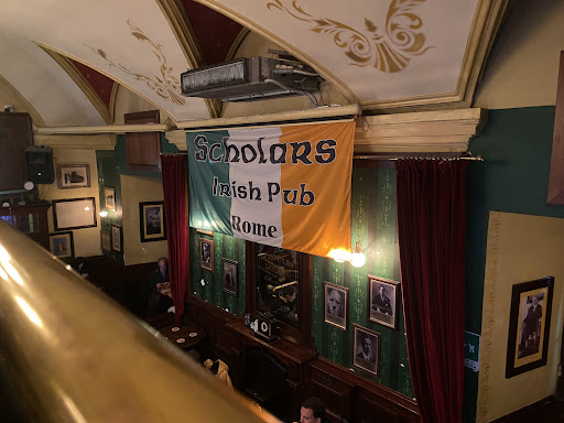 Dirty, a bar full of glasses waiting to be washed, making it so people can’t sit. I moved them over myself. A wipe only came after having to ask. The sign says, Irish owned, Irish staffed, a pleasant Asian man helped me by giving me a drink menu, while he was off through a door to wherever he got my beer from an Italian girl asked me if I wanted anything, I asked her for a food menu, she told me that the menu that I just had was a food menu. I told her that no it was drinks only and then she really rudely told me I was wrong that they only had one menu and then bought me back a menu that had drinks and food on it. Well me being me don’t like to be told that I’m a liar or that I don’t know what I’m talking about called her on that. Then a waitress who seemed to actually be Irish asked me what was wrong and I told her what was going on and she goes. Yes that’s the only menu we have I said no you have a menu that has nothing but drinks on it and then she says oh that must’ve been our whiskey menu and I say I guess so. I don’t know. I’ve never been here. All I know is I don’t like being called a liar and have people be rude to me because they don’t know what the heck they’re doing or what they actually have in the establishment then she rather rudely asked me. Do you want to order anything, and I told her I don’t know. I just got my menu and I have to look at it to decide what I want. After a couple minutes, the Italian girl came back and asked me if I knew what I wanted and I ordered a hamburger with french fries and I asked if I could have the french fries crispy well she didn’t know what the word crispy was and I didn’t know how to say it in Italian and I tried to say cooked longer, well done and she then told me they only have one type of french fries, so I gave in and just ordered the french fries. When the food came out to no great surprise. The french fries were under cooked ,and the hamburger was mediocre at best. Funny where I was sitting there were two signs both identical sitting right in front of me. They were awards for being the best pub in Europe in 2017. Well that was a long time ago and it showed. In the past two years I’ve been to pubs and Belfast, Dublin, Edinburgh, Glasgow, Manchester, London, and so I figured I would try one of the Irish pubs in Rome, big mistake. down below while leaving this review, they have an option on what foods I would recommend there. I can’t really answer that question. It certainly isn’t the hamburger and french fries I had and did. In fact I wouldn’t even recommend walking into the place. there are other Irish, British and Scottish style pubs in Rome. Maybe I’ll give one of those a go but the Scholars lounge Irish pub...