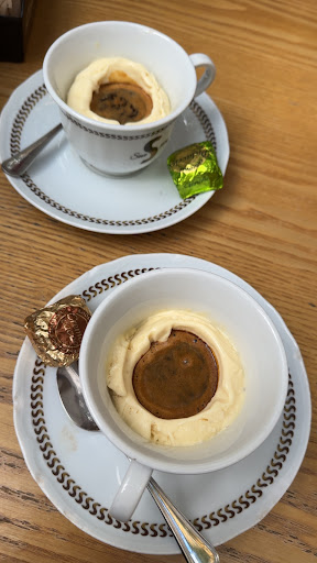 La bomba... Cruda... COME CAVOLO VI VIENE IN MENTE DI SERVIRE UNA BOMBA TOTALMENTE CRUDA DENTRO. In compenso la crema era abbastanza buona, non perfetta, ma comunque buona. Tra l'altro rivolto al signore che non aveva fatto lo scontrino e voleva il craffen. Guardi menomale che non si sanno gestire le ordinazioni, sennò le toccava a lei sto kraffen crudo. (Si perché giustamente, c'è gente senza scontrino e gente con scontrino. E via con i conflitti su chi riesce ad accaparrarsi prima le cose... Che schifo di organizzazione)